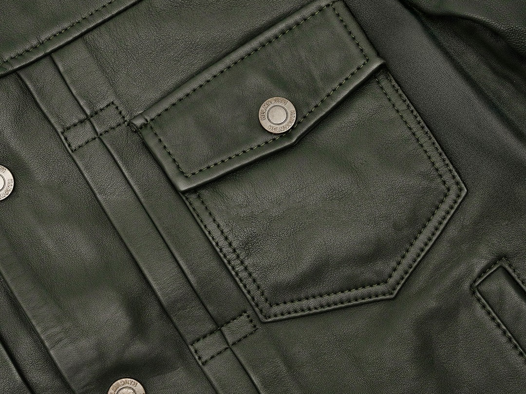 Crafted from full-grain lambskin in a roasted green tone, the Matcha Noir delivers sharp edge and earthy depth in one tailored silhouette. With folded seams, and tone-on-tone lining, it’s built for year-round wear — and made to lead, not follow.